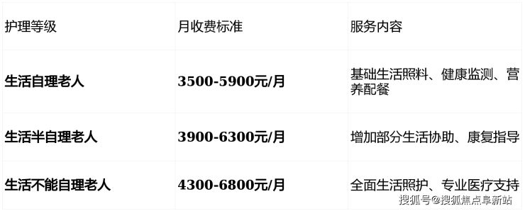 注:所有费用均涵盖基本生活照料、膳食配餐及日常护理服务,具体明细需以机构咨询时确认为准。