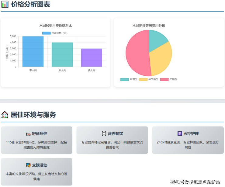 总体费用在4200-13500元/月之间,具体根据长者的实际状况和选择的房型、服务内容而定,真正做到透明合理,无隐形消费。
