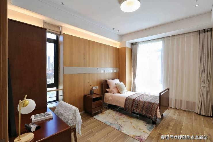 房间内部更是温馨舒适,装修精致。每间房都配备了独立的卫生间,卫生间内安装了防滑地砖、扶手、紧急呼叫按钮等安全设施,充分考虑到了长者的行动安全和应急需求。房间内还有空调、电视、冰箱等基本生活设施,以及舒适的床铺和家具,为长者提供了一个舒适宜人的居住环境。此外,房间的采光和通风效果都非常好,阳光可以充分洒进房间,让长者感受到温暖和惬意。