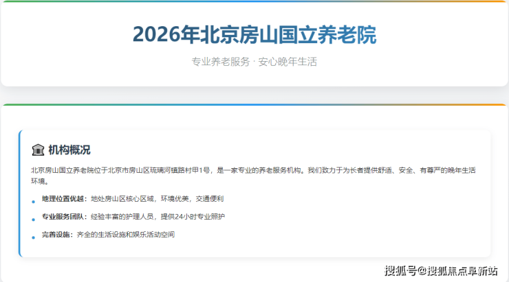 北京房山国立养老院:2026最新地址导航/入住条件/费用明细一览