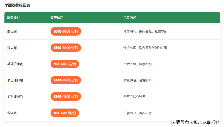 山庄采用科学的分级收费模式,月均费用区间为6000元至13000元,具体费用根据长者健康评估结果与照护需求定制: