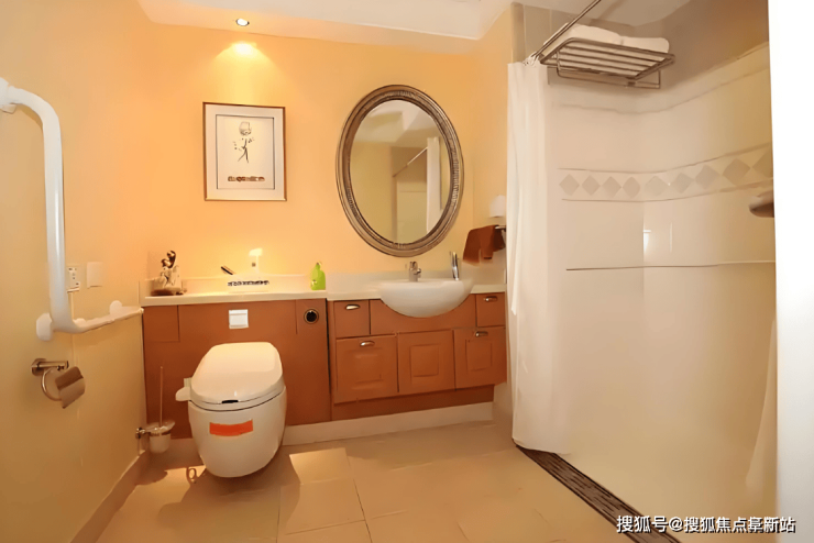 房间内还配备了紧急呼叫系统,长辈在遇到紧急情况时,只需按下按钮,护理人员就能第一时间赶到。卫生间进行了适老化改造,安装了防滑地砖、扶手等设施,降低了长辈滑倒摔伤的风险。同时,房间内还设有无障碍通道,方便轮椅通行,为行动不便的长辈提供了便利。