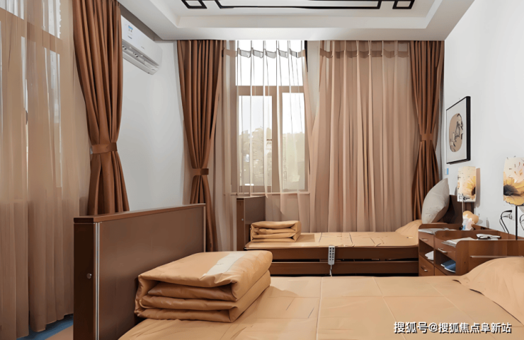 家具配置:房间内家具采用环保材料制作,无异味。家具设计符合人体工程学原理,如床铺软硬适中,能让长者得到充分的休息;衣柜设计合理,方便长者存放衣物。