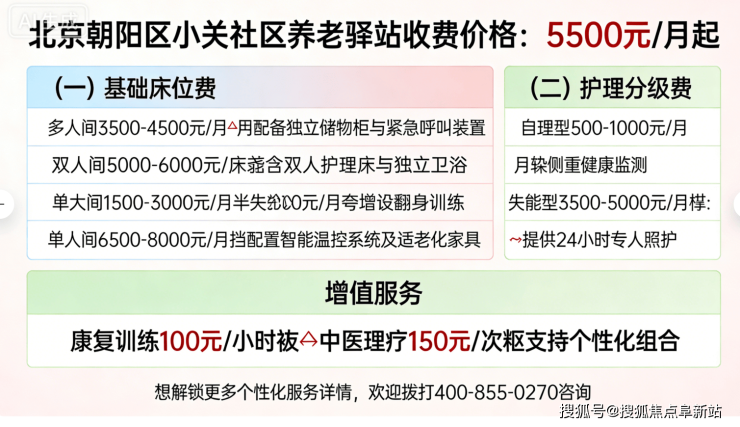 朝阳小关社区养老服务驿站:价格5500元/月起,地址+电话速戳,短期照护收费一览
