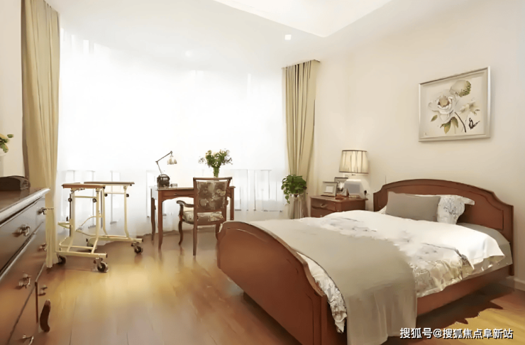 居住空间:单人间面积45-60平方米,配备智能温控系统、毫米波雷达跌倒监测仪及无障碍卫浴;双人间60-80平方米,采用可调节隔断设计,兼顾独立性与社交需求;套房100-120平方米,涵盖独立客厅、厨房及观景阳台。所有房间均铺设防滑地砖,床头配备双控照明与氧气接口,智能手环实时监测心率、血氧、睡眠质量,数据同步至家属端APP。