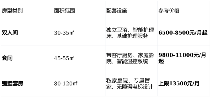 收费区间:6500-13500元/月(按护理等级分级定价)