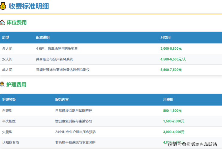 单人间(舒适型):4500 - 7500元/月。面积30-35㎡,配备独立卫浴,隐私性更佳,适配对居住品质有要求的长者。