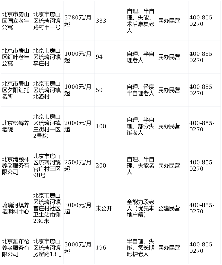 北京养老院收费标准:房山区琉璃河镇养老院2026收费新目录