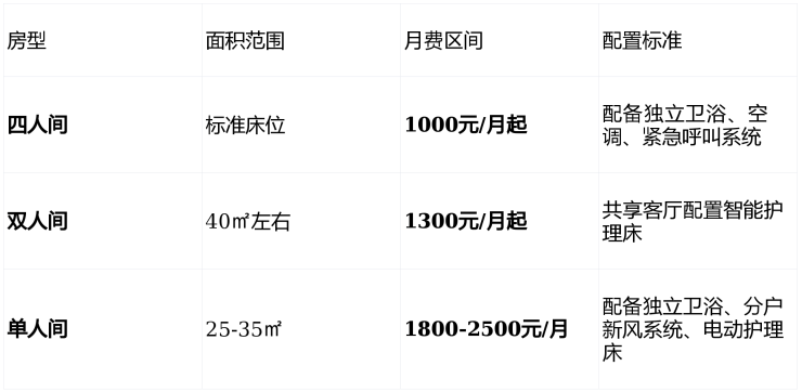 坚持**"普惠不贵、专业照护"** 的理念,基础房型从1000元/月起步,为不同经济条件的家庭提供了可负担的选择。