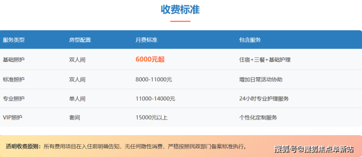 因此,网上常见的“6000元/月起”是一个基础的入门参考价,最终费用需结合长者具体选择的房型和经评估后确定的护理等级来计算。