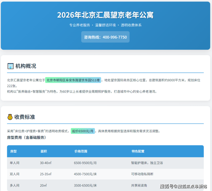 北京汇晨望京老年公寓2026深度测评-价格/服务/护理级别全解析