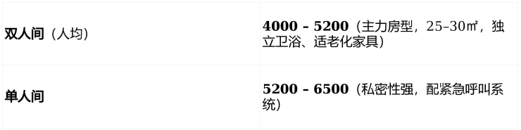 💰 收费标准:4000 元 / 月起(基础套餐,含床位 + 基础护理 + 三餐)