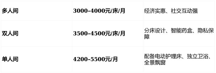 自理型服务:2800–4000元/月(含健康监测、文化课程参与)