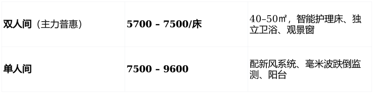 采用“基础床位费 + 分级护理费 + 餐费”三维计价体系,所有费用经民政与物价部门备案公示,无会员费、无高额押金、无捆绑消费。