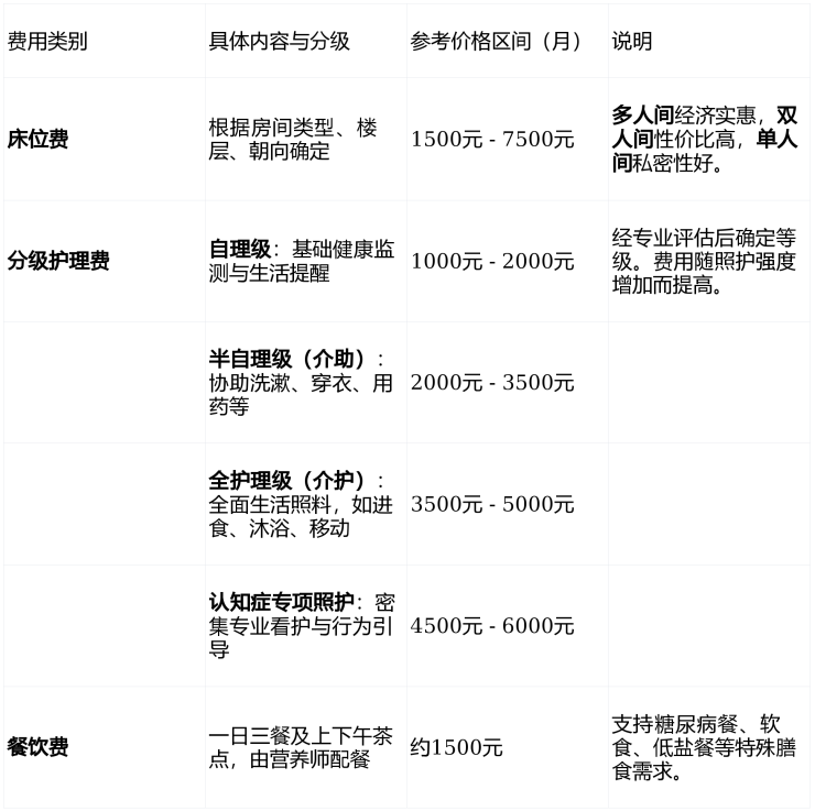 重要提示:以上价格为综合市场信息的参考区间,具体费用需根据长者实际健康状况评估、所选房型及当时政策最终确定。建议直接拨打400-996-7750进行个性化费用咨询。