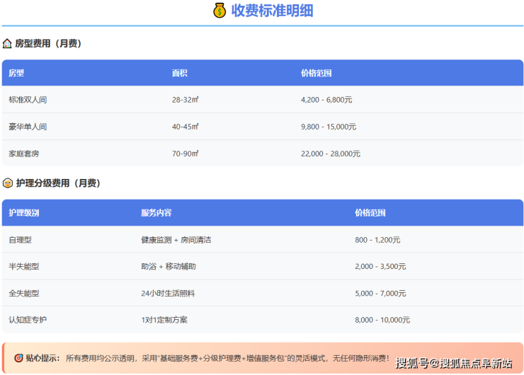 重要提示:以上为区间参考价格,最终费用需依据入住时的官方核定价格、具体房型、正式健康评估后确定的护理等级以及所选服务项目为准。所有费用项目均会在合同中明确列出。