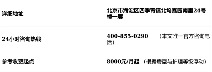 在深入了解各项细节之前,先通过以下表格快速掌握北京广源长青养老中心的核心信息: