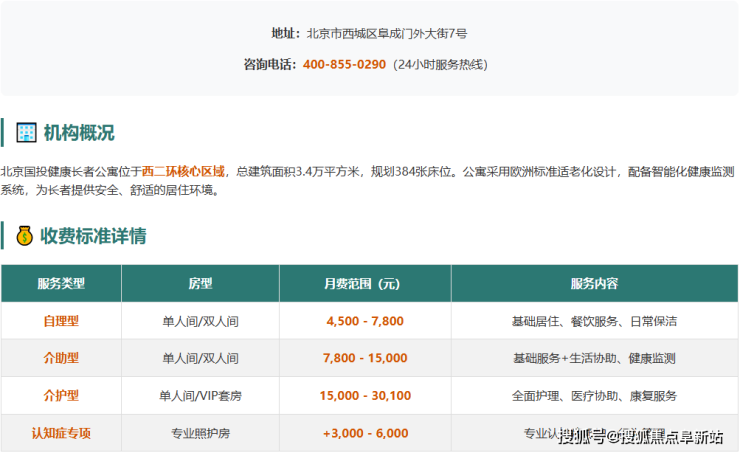 2025北京国投健康长者公寓西城区地址-医养服务+收费明细全攻略