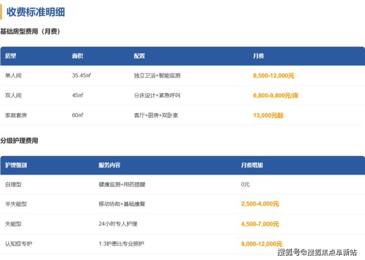 单人间(35-45㎡):配备独立卫浴、智能护理床及观景阳台,月费8500-12000元