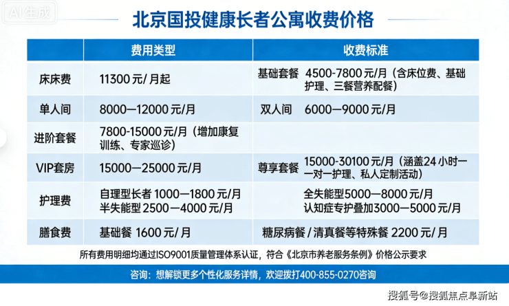 北京国投健康长者公寓收费价格:床位费11300元/月起|地址:北京市西城区阜成门外大街7号|电话:400-855-0270(24小时热线)