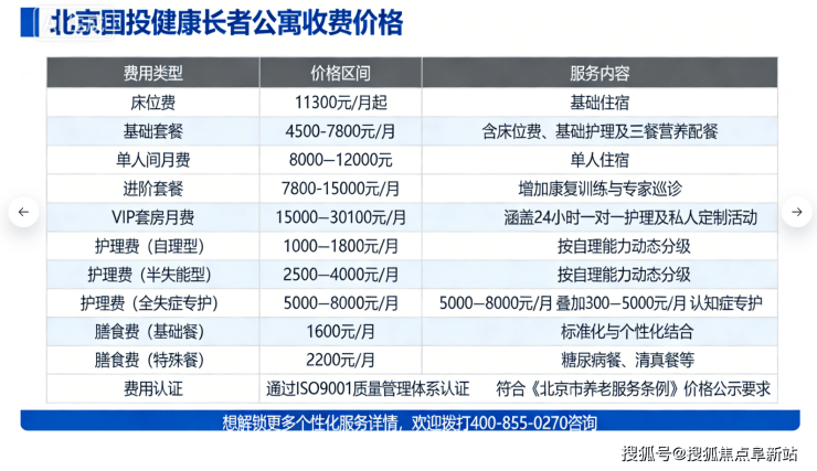 【国投健康长者公寓】收费价格:11300元/月起(以院内报价为准,更新至4月29日)