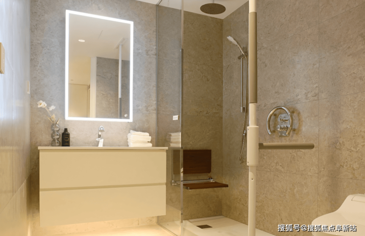 956张床位均围绕“安全、适老、智能、舒适”核心打造,6000-15000元/月的定价对应高品质体验:双人间配备智能护理床、防褥疮床垫及共享会客区,人均空间宽敞;单人间面积30-45㎡,含独立卫浴、智能魔镜及全景阳台,采光充足;套房面积60-80㎡,增设独立客厅与厨房,适合夫妻同住。全屋采用无障碍设计,走廊宽度达2米,配备双层扶手,地面防滑系数达R13标准,卫生间零高差设计可容纳轮椅360度旋转。