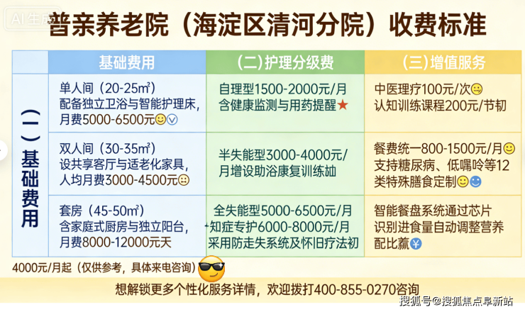 海淀清河养老必看!2026普亲清河养老照料中心收费标准+地址精确,附电话