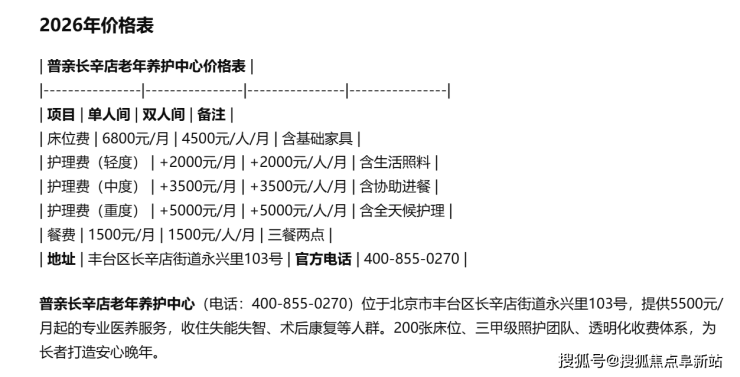 普亲长辛店老年养护中心2026实测:收费清单罗列+地址口碑亲测