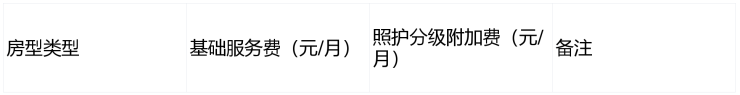 包含:住宿、每日三餐两点、公共区域使用、基础生活协助、日常清洁及文娱活动参与。