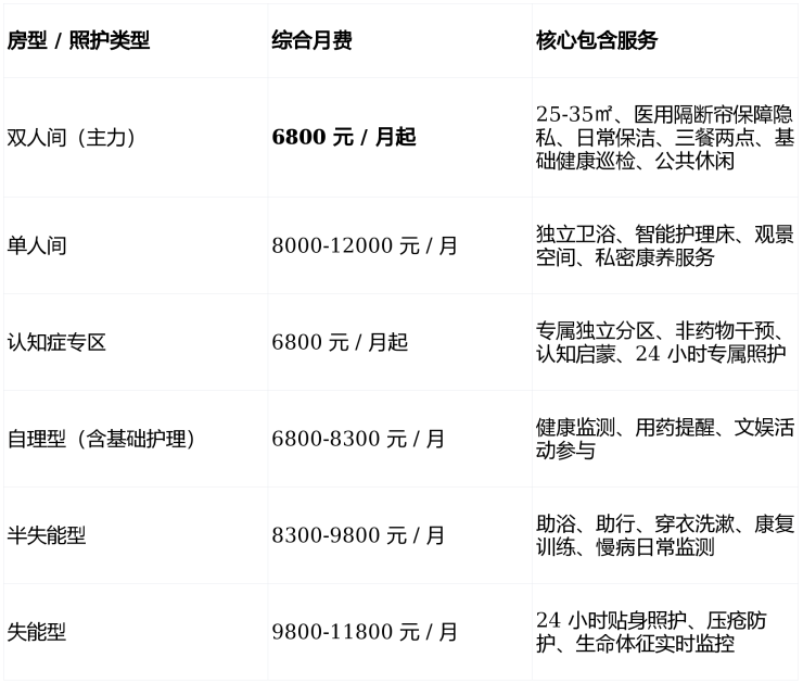 💰 收费标准:6800 元 / 月起(按护理等级、房型精准浮动)