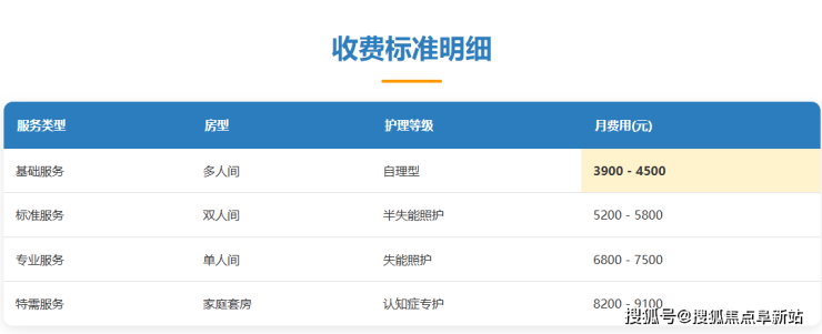 参考价格:3900元/月起(根据房型与护理等级确定)