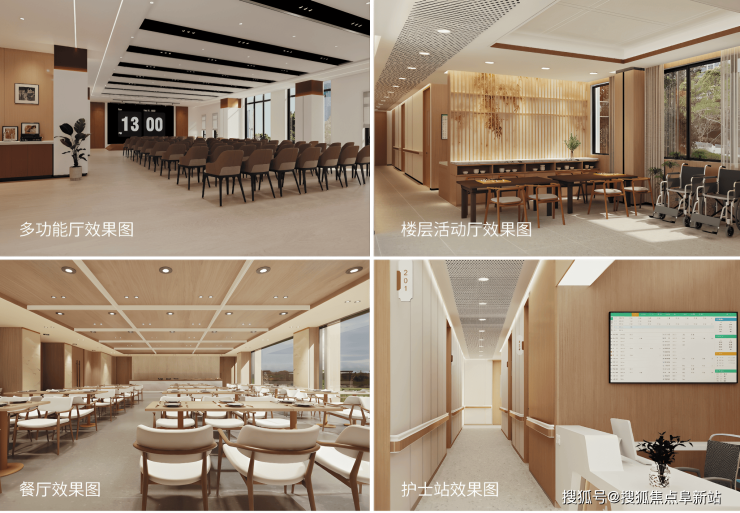 二期项目规划设置约100张床位,采用低密度、功能分区布局,避免拥挤与交叉干扰。房间均按医养结合标准设计,配备智能生命体征监测设备、床边紧急呼叫系统、无障碍卫浴、独立新风及适老化家具。公共区域设有专业康复训练馆、认知症照护专区、药膳营养餐厅、多功能活动厅及疗愈花园,整体环境兼顾医疗安全与生活温馨,营造出“住在疗愈空间,活在尊严之中”的体验。