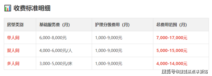 护理分级:自理型6800-10000元/月,失能型25000-35000元/月
