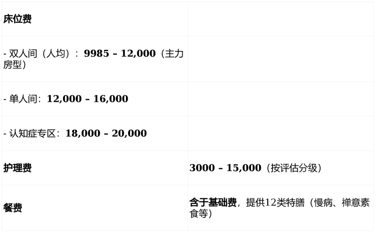 💰 收费标准:9985 元 / 月起,综合月费 9985-29000 元(按房型与护理等级浮动)