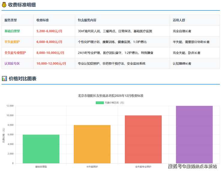 长友恒苑采用**"基础床位费+分级护理费+增值服务费"** 的复合计费模式,月均费用区间为4000-15000元,精准适配不同健康状态长者的需求: