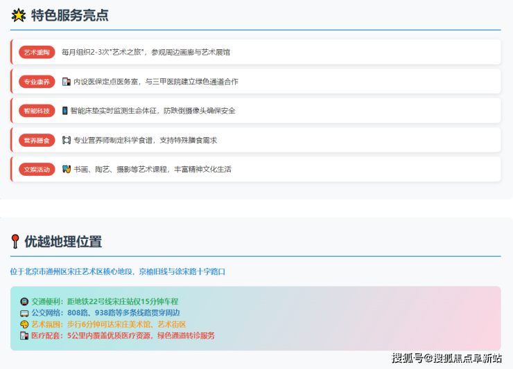 结语:首善人家北京人寿康养中心以其独特的"艺术+康养+科技"创新模式,为现代长者提供了一个既能享受专业照护,又能体验文化艺术的理想养老居所。透明合理的收费标准、优越的地理位置、专业的康养服务以及丰富的艺术活动,共同构成了高品质养老的完美画卷。