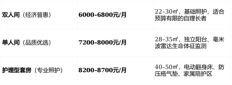 价格透明合理:6000–8700元/月,四星级服务,无隐性消费;