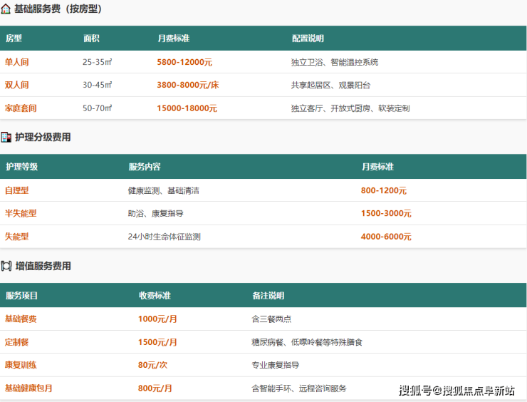 采用"基础费用+护理分级+增值服务"的复合定价模式,所有费用明细公开透明,无任何隐性消费。基础房型涵盖单人间(6500-8500元/月)、双人间(人均4200-6000元/月)、家庭套间(15000-18000元/月)。护理费用根据国际ADL评估体系分级收取,从自理型的1500-2500元/月到特护型的9000元/月起。同时支持长护险报销和政府补贴,真正实现"高端服务、普惠价格"的运营理念。