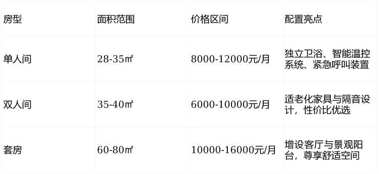 此费用包含床位、基础物业管理、公共区域维护及基础生活服务。具体房型价格如下: