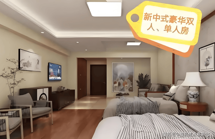 亲情双人间/豪华套间:8000-12000元/月/床起。满足夫妻同住或对居住品质有更高要求的长者。