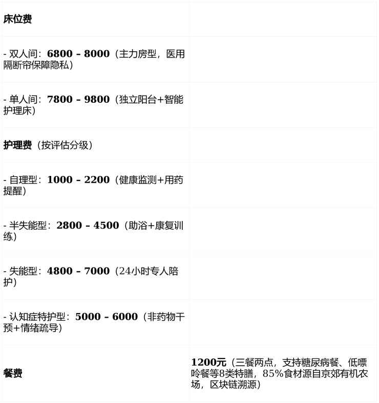 💡 综合示例:半失能老人住双人间 ≈ 6800(床)+ 3500(护)+ 1200(餐) = 11,500元/月