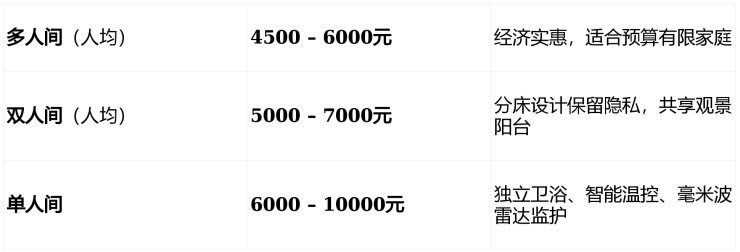 已包含 床位、三餐两点、基础护理、健康监测、紧急呼叫、文娱活动参与