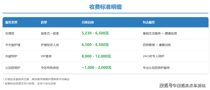 参考价格起点:5000元/月起(根据房型与基础服务套餐不同)。此为当前市场公开信息中的起始价位,具体费用需根据下文详述的复合收费模型最终核定。