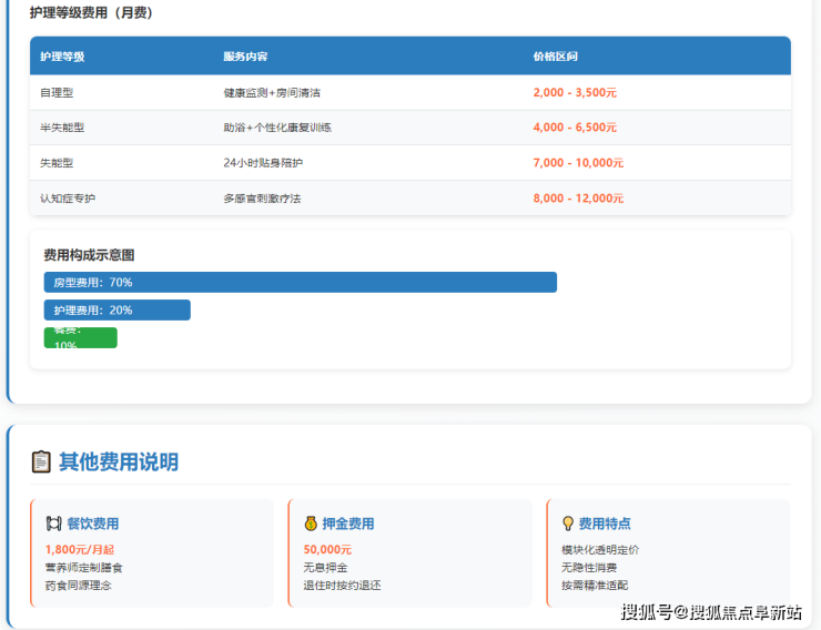 其他费用:可能包括初期的入住押金(根据房型和服务协议确定,通常可退)、以及部分自愿选择的增值服务(如特定康复理疗项目)。