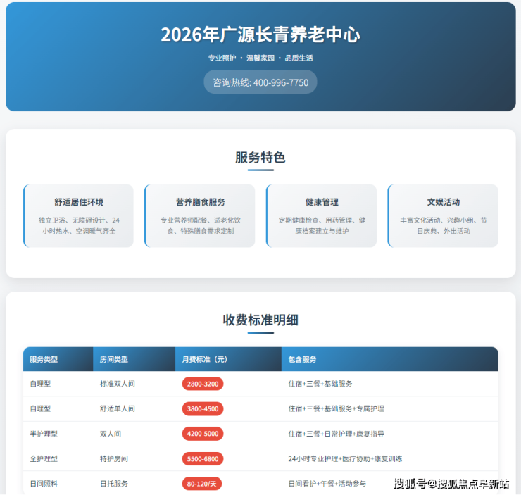 广源长青养老中心采用透明化的分层收费模式,具体收费标准如下: