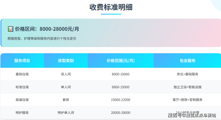 社区采用“基础床位费 + 分级护理费 + 个性化餐饮费”的模块化收费模式,所有费用均公开透明,无隐性消费。