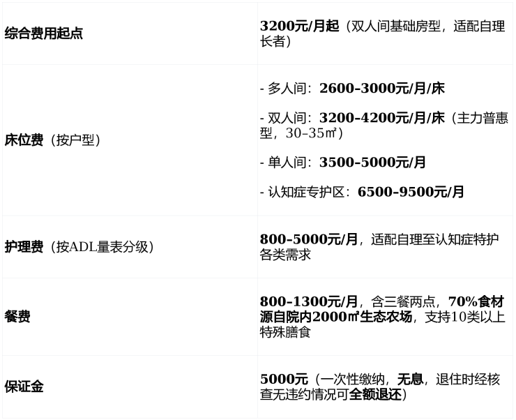 普惠透明优势:3200元/月起亲民定价,5000元无息保证金,无隐性消费,支持医保及长护险结算,梯度定价适配不同预算家庭;