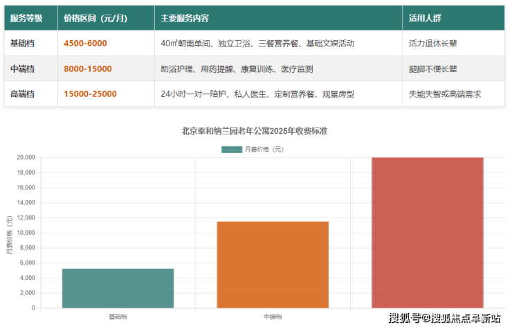 基础套餐:自理长者单人间4500-6000元/月,双人间5500元/月起