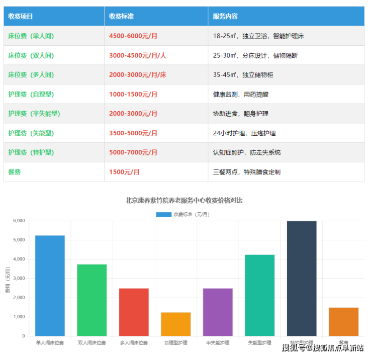 单人间(18-25㎡):4500-6000元/月,配备独立卫浴与智能护理床
