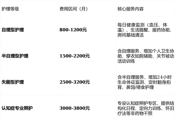 基础收费起点:3000元/月(涵盖基础住宿与三餐)